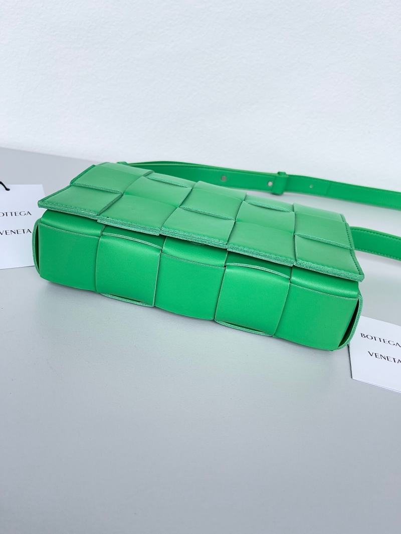 • Bottega Veneta 寶緹嘉 Intreccio編織皮革 Cassette斜挎包 鸚鵡綠