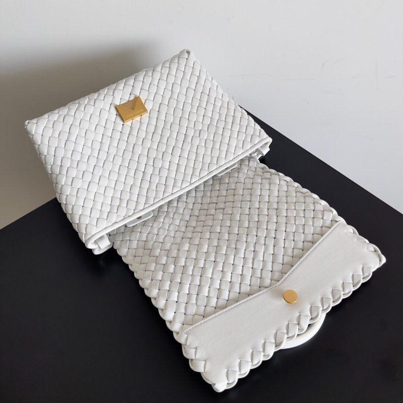 • Bottega Veneta 寶緹嘉 Intreccio編織皮革 Patti手提包 粉筆白