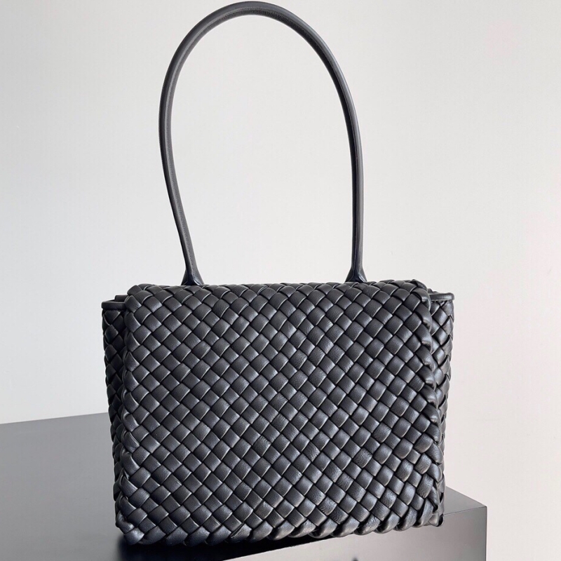 - Bottega Veneta 寶緹嘉 Intreccio編織皮革 Patti手提包 BV腋下包 黑色