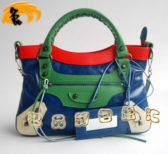 當前位置: 首頁>Balenciaga|巴黎世家>Balenciaga女包>機車包> 084331 巴黎世家女包 拼色頭層牛皮女士機車包 Balenciaga手提包 單肩包 藍配紅色