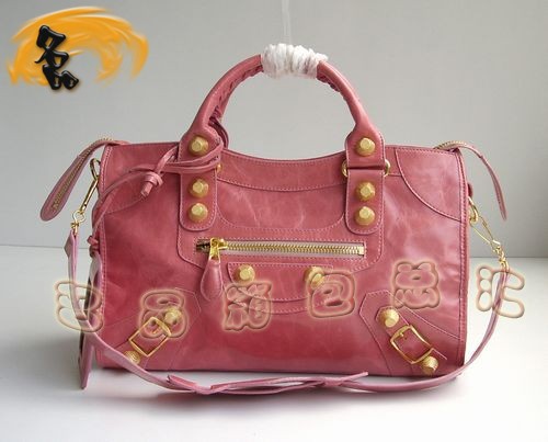 • 084332B BALENCIAGA粉紅色牛皮手提包 BALENCIAGA機車包 BALENCIAGA斜挎包