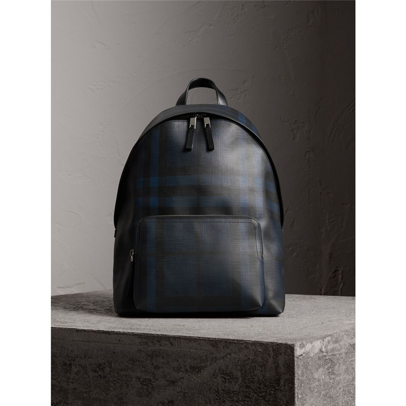 • 40315661 巴寶莉 皮革裝飾 London 格紋雙肩包 巴寶莉男包 黑色配海軍藍(lán)