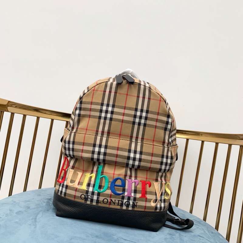 • 5366580 BURBERRY 新款格紋帆布 刺繡彩虹字母 雙肩包 黑色