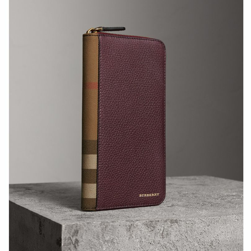 40397501 巴寶莉 House 格紋 拼粒紋皮革 全拉鏈 巴寶莉錢包 旅行錢夾 葡萄酒色