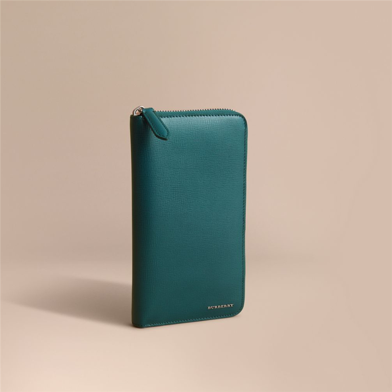 40520941 巴寶莉 London 光滑皮革 全拉鏈 巴寶莉錢包 旅行錢夾 深水鴨色