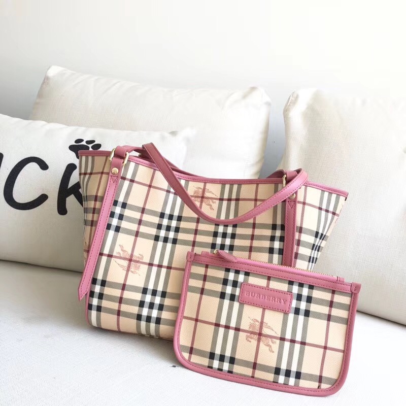 Burberry子母包 經(jīng)典戰(zhàn)馬格紋 巴寶莉托特包 手提單肩購物袋 粉色