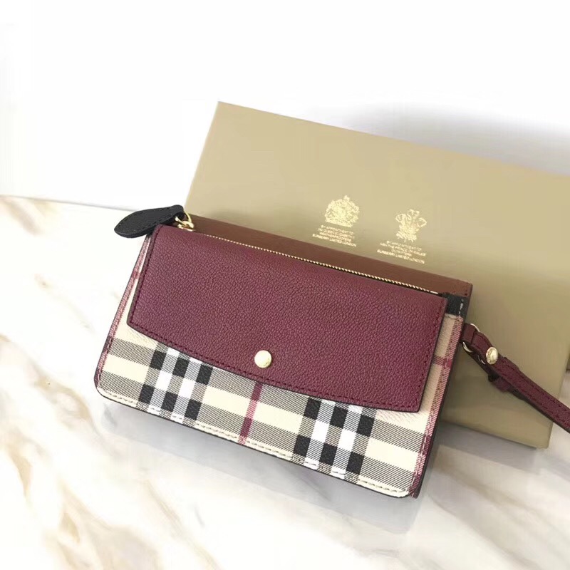 當前位置: 首頁>Burberry|博柏利>Burberry女包> BurBerry巴寶莉 拼色前后翻蓋 戰馬格紋 手包錢包兩用包 棕色拼棗紅