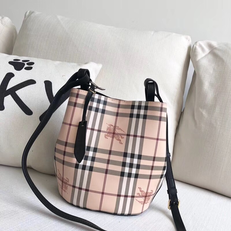 當前位置: 首頁>Burberry|博柏利>Burberry女包> Burberry巴寶莉 Haymarket格紋 戰馬印花 拼色皮革 水桶包 黑色