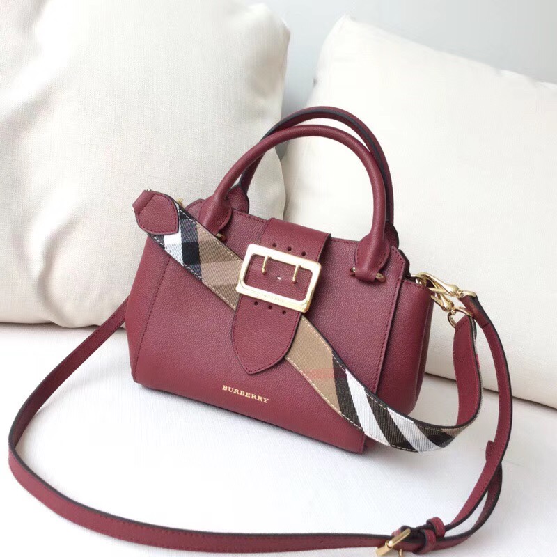 Burberry巴寶莉 專柜新款 小號 翻蓋金屬帶扣 手提肩背包 酒紅色