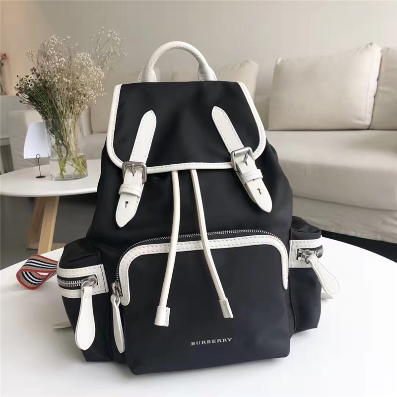 40787611 Burberry 中號 The Rucksack 拼色尼龍皮革 軍旅背包 黑色