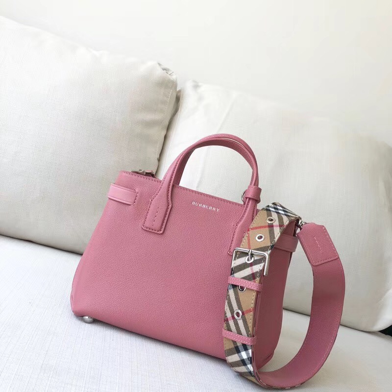 40800741 巴寶莉 The Banner系列 小號(hào) 皮革拼Vintage格紋 班納手袋 桃粉色