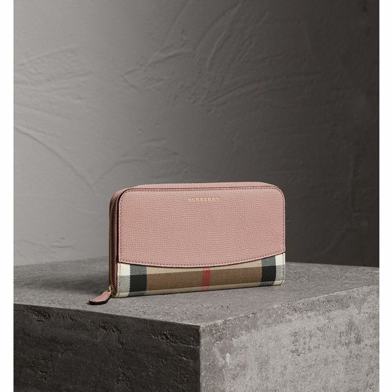39968781 Burberry巴寶莉 House 格紋 拼小牛皮 全拉鏈錢夾 淺蘭花色