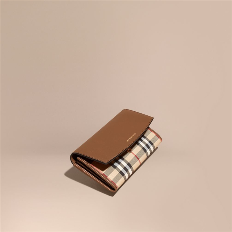 >Burberry|博柏利>Burberry錢包>Burberry女士錢包> 40249911 Burberry巴寶莉 Horseferry 格紋拼皮革 長(zhǎng)款錢夾 棕褐色商品描述