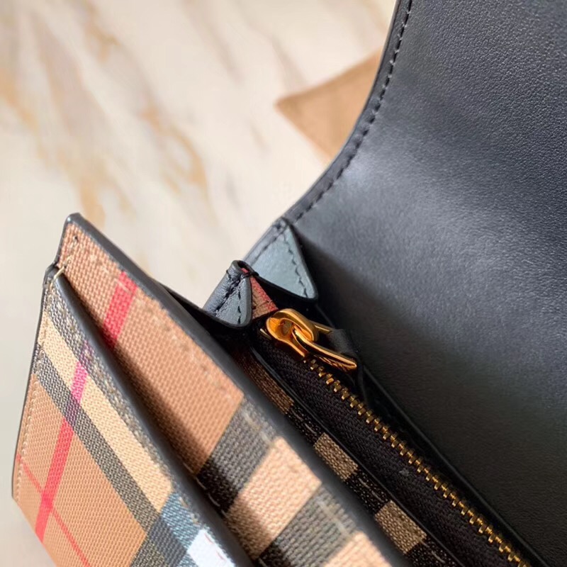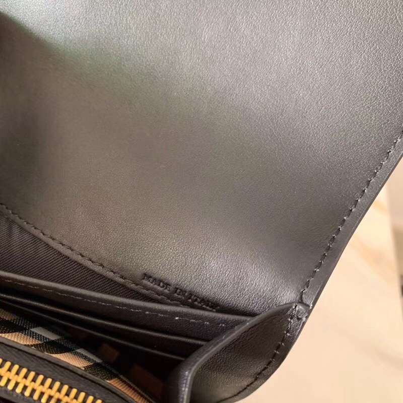 40734271 Burberry女款錢包 Vintage格紋拼皮革 撞色 巴寶莉長款錢夾 黑色