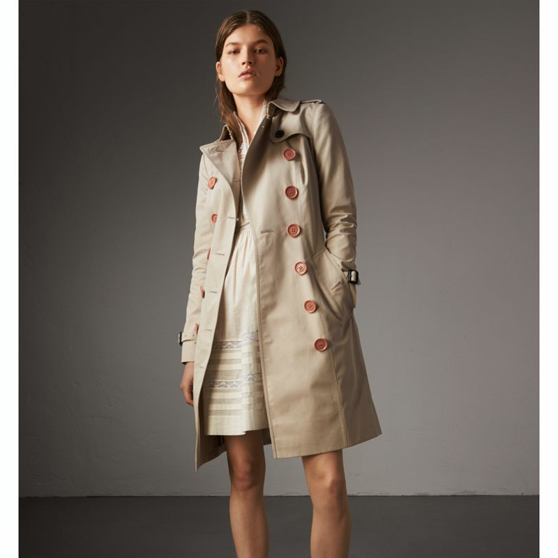 當前位置: 首頁>Burberry|博柏利>Burberry女裝> 40556981 巴寶莉 切爾西版型 樹脂紐扣 長款 棉質嘎巴甸 Trench 風衣 石色