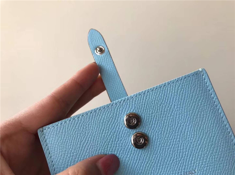 104323 Celine賽琳 Strap 粒面拼亮澤小牛皮 風琴褶 卡包 天藍色
