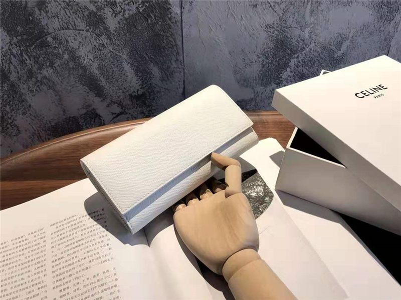 • 10B563 Celine錢包 壓紋粒面 小牛皮 大號 Celine翻蓋長款錢包 白色