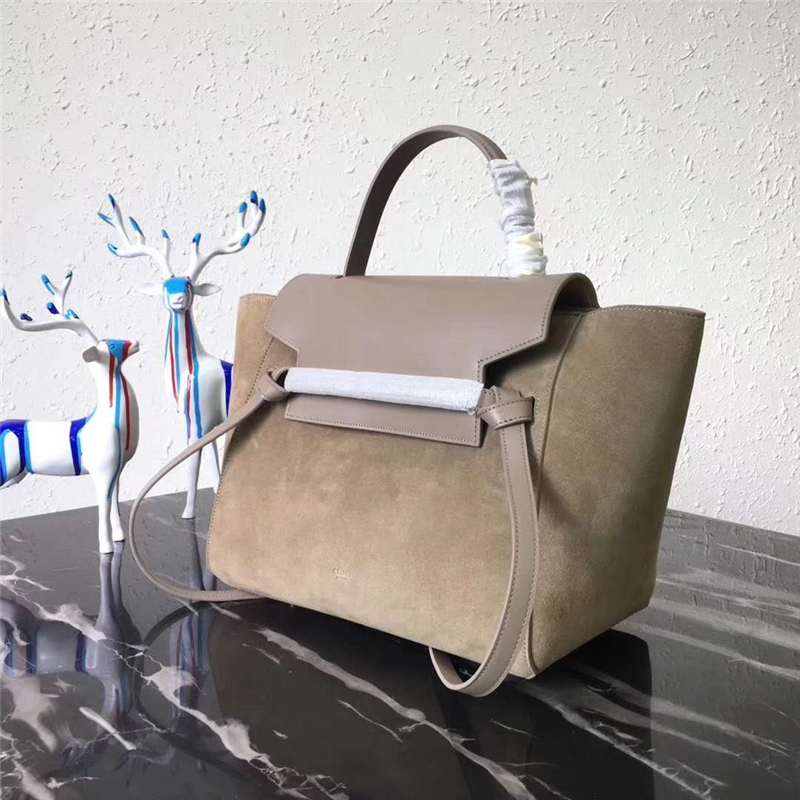 - 176103 Celine Belt bag鯰魚包 磨砂皮拼皮革 流蘇裝飾 手提單肩包 卡其