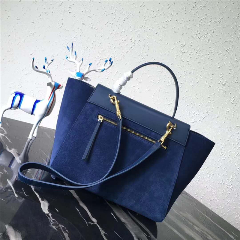 176103 Celine Belt bag鯰魚包 磨砂皮拼皮革 流蘇裝飾 手提單肩包 藍色