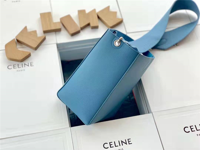 189303 Celine手袋 SANGLE BUCKET 小號 粒面小牛皮 Celine水桶包 天藍色