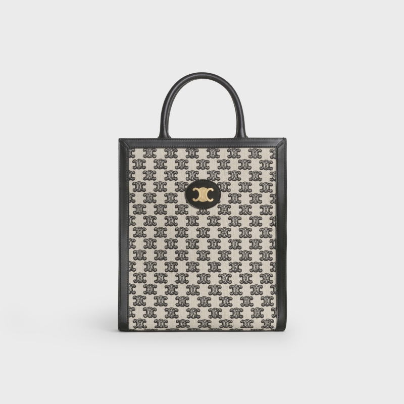 194352 Celine賽琳CABAS 小號TRIOMPHE刺繡織物豎款手袋 celine托特包 黑色
