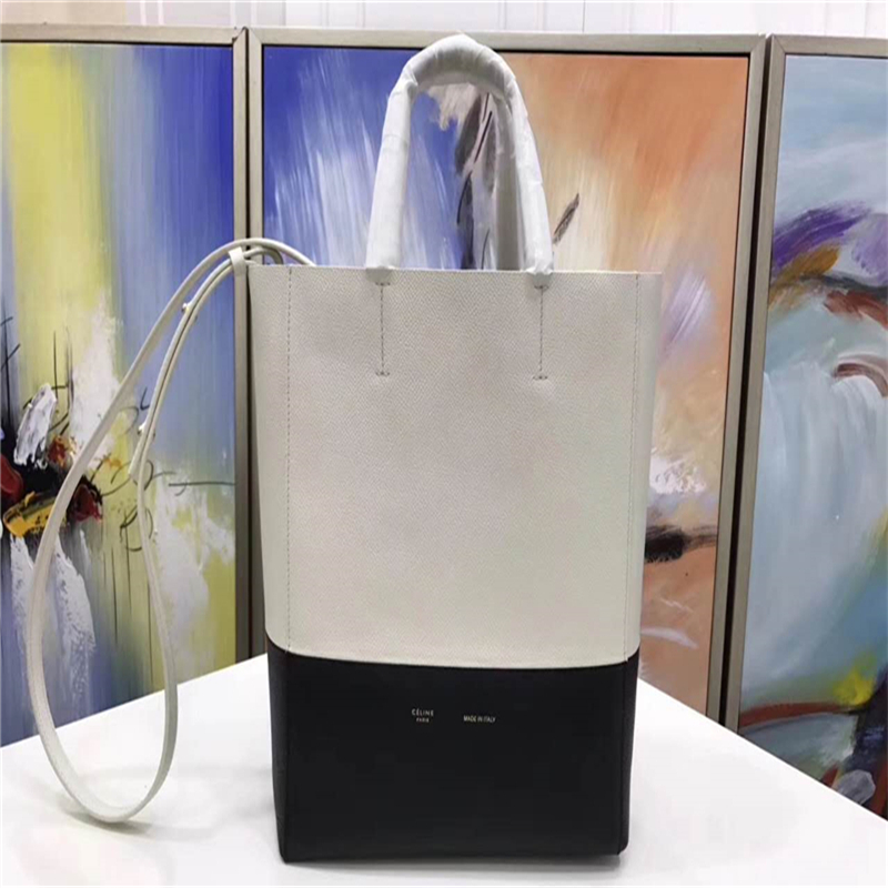 Celine 賽琳 17秋 Cabas 手掌紋 羊皮 拼色 手提水桶包 白拼黑