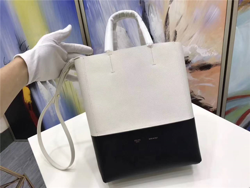 • Celine 賽琳 17秋 Cabas 手掌紋 羊皮 拼色 手提水桶包 白拼黑