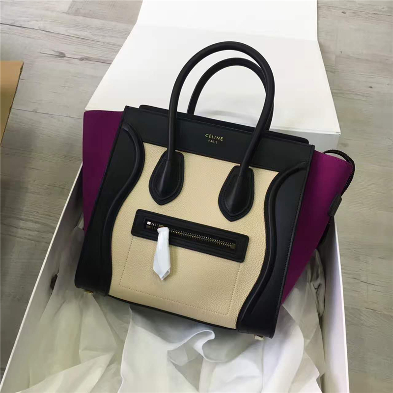 2017賽琳 celine笑臉包囧臉包 頭層牛皮 三色拼接 翅膀手提包 奶油黃黑磨砂紫
