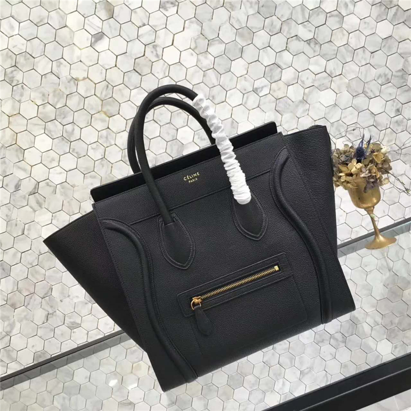 2017賽琳 celine笑臉包 囧臉包真皮 中號 頭層牛皮 翅膀手提包 墨黑色