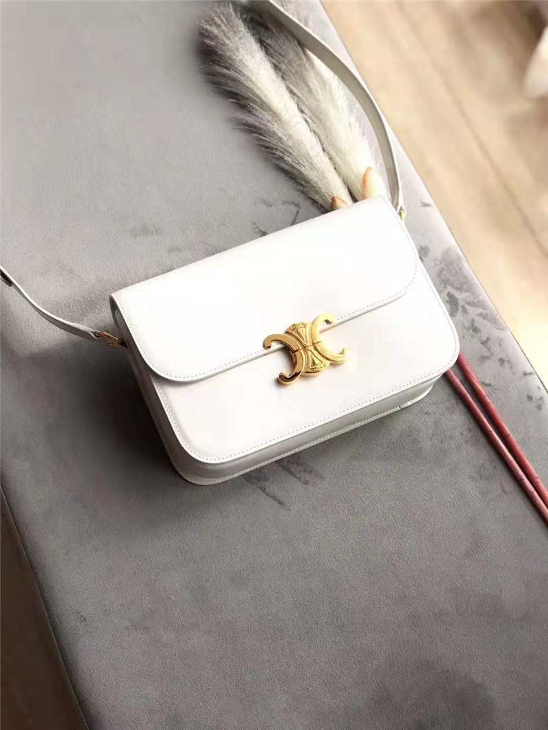 • Celine包包 賽琳女包 Triomphe系列 倒雙C黃銅鎖 中號(hào) 白色