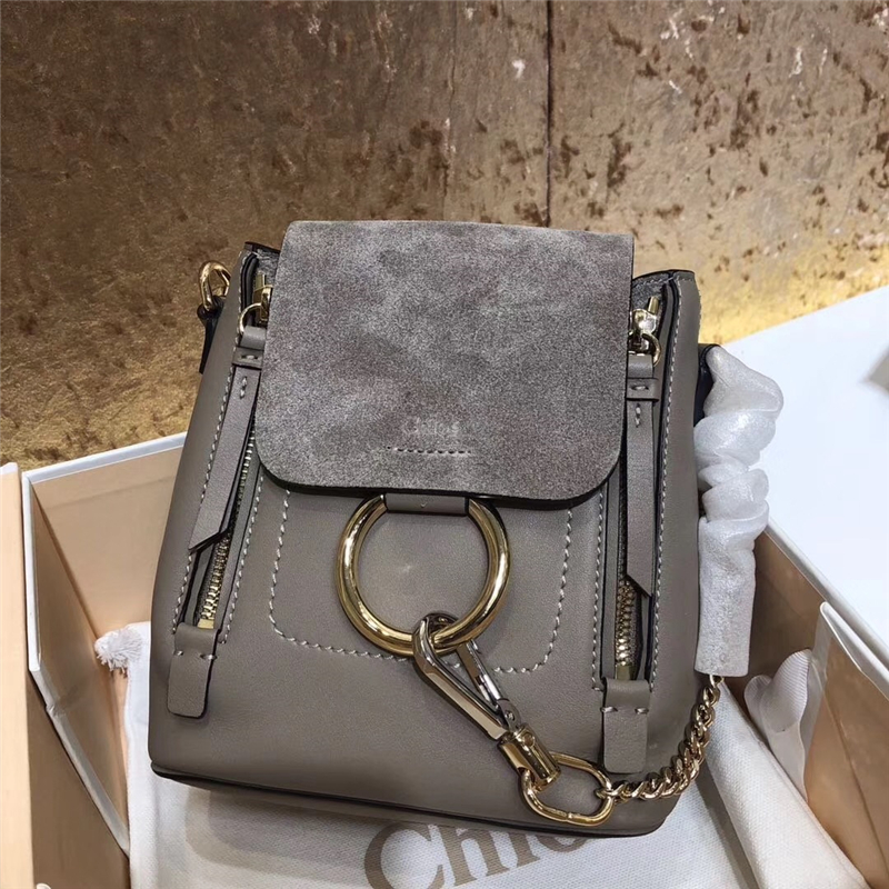 - 1232 Chloe Faye雙肩包 小牛皮麂皮 珂洛伊背包 Chloe迷你雙肩包 灰色