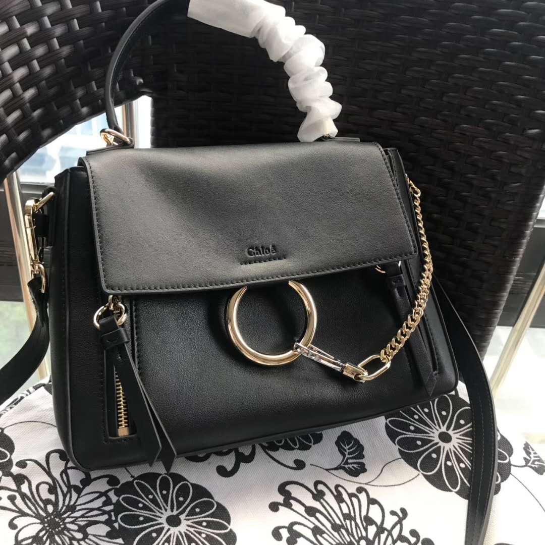 Chloé 珂洛伊 Faye Day 定制肩帶 大號 圓環鏈條 單肩斜挎包 黑色
