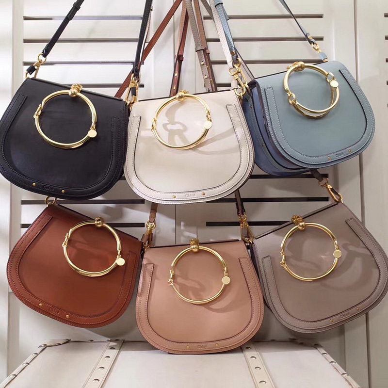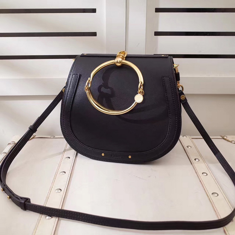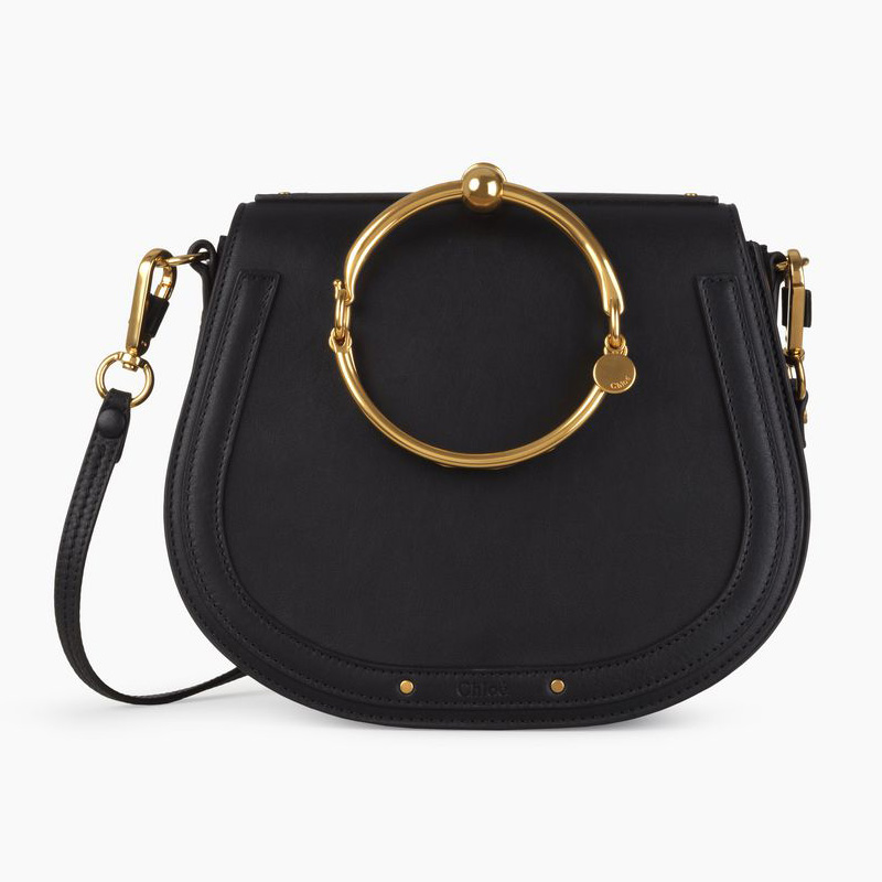- chloe Nile手環(huán)包 光滑小牛皮拼接麂皮小牛皮中號(hào)手鐲式提手手袋 黑色