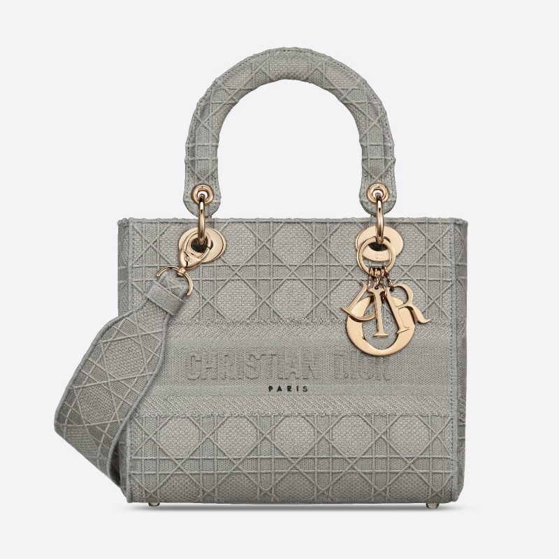 • M0565 迪奧Dior 中號 Lady D-Lite 手袋 藤格紋刺繡 灰色