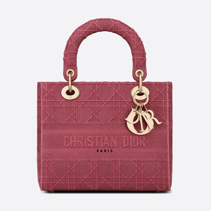 • M0565 迪奧Dior 中號 Lady D-Lite 手袋 藤格紋刺繡 木槿粉色