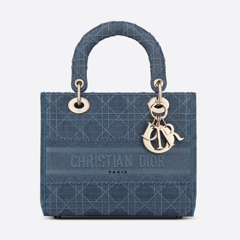 • M0565 迪奧Dior 中號 Lady D-Lite 手袋 藤格紋刺繡 深丹寧藍色