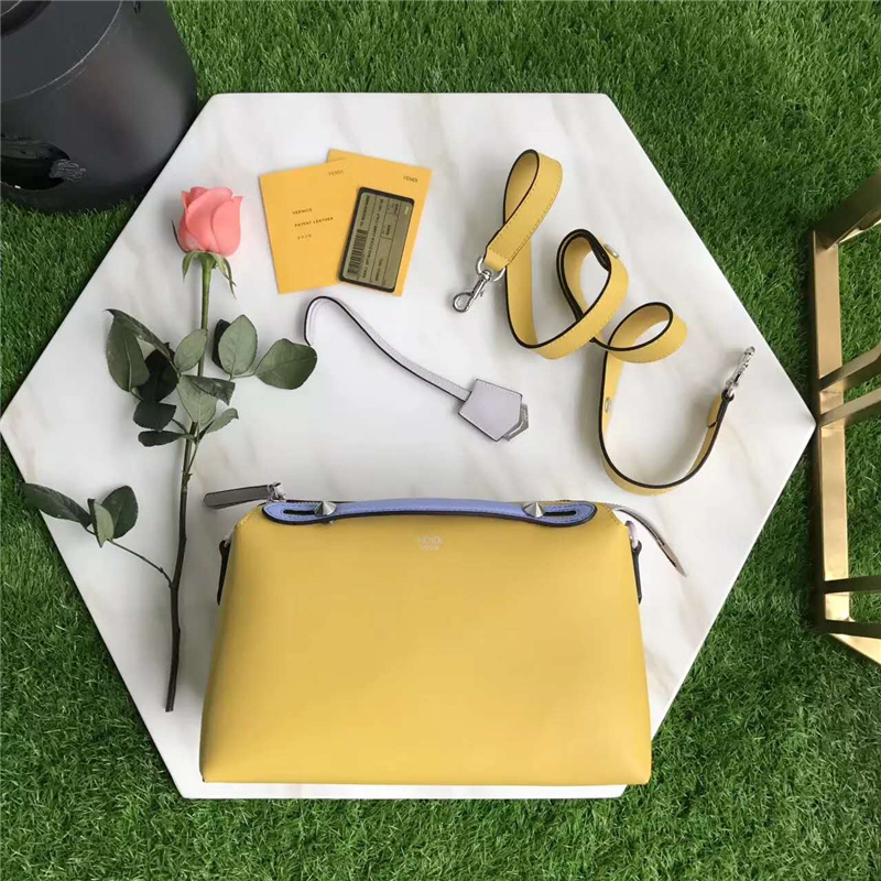 • 149S FENDI 芬迪 2017新款 柔軟小牛皮 拼色波士頓手提包挎包 檸檬黃拼白