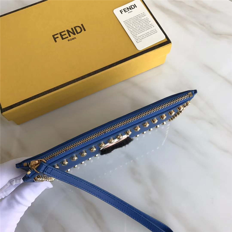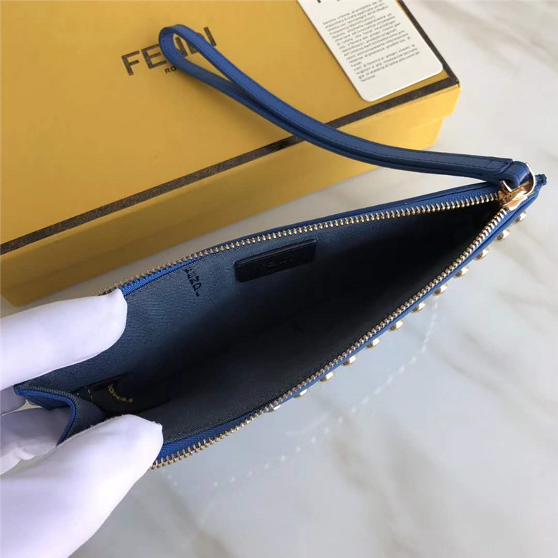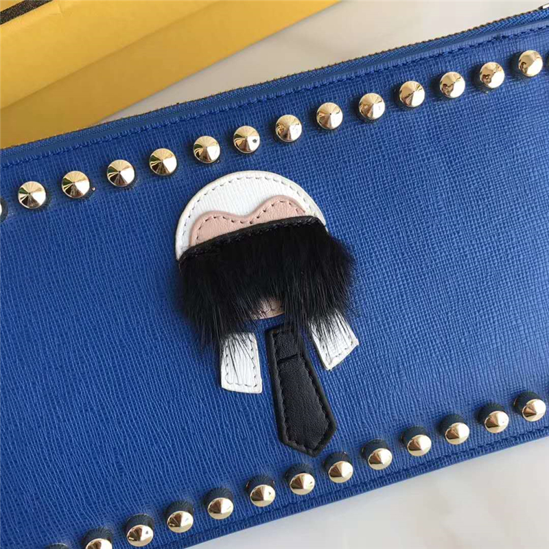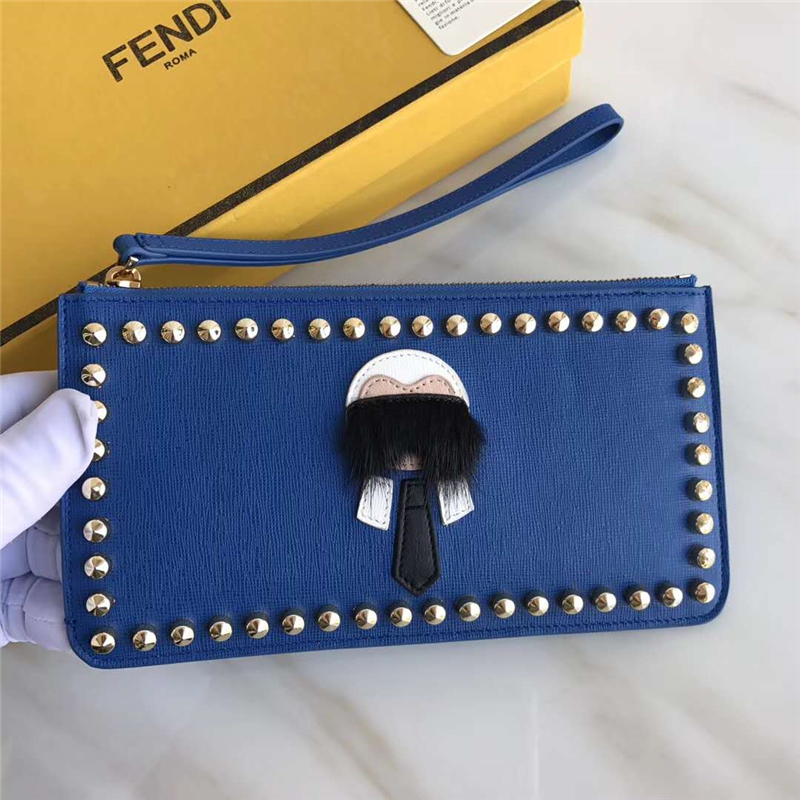 • FENDI 芬迪 151 2017新款 牛皮女士手拿包 老佛爺頭像 藍色