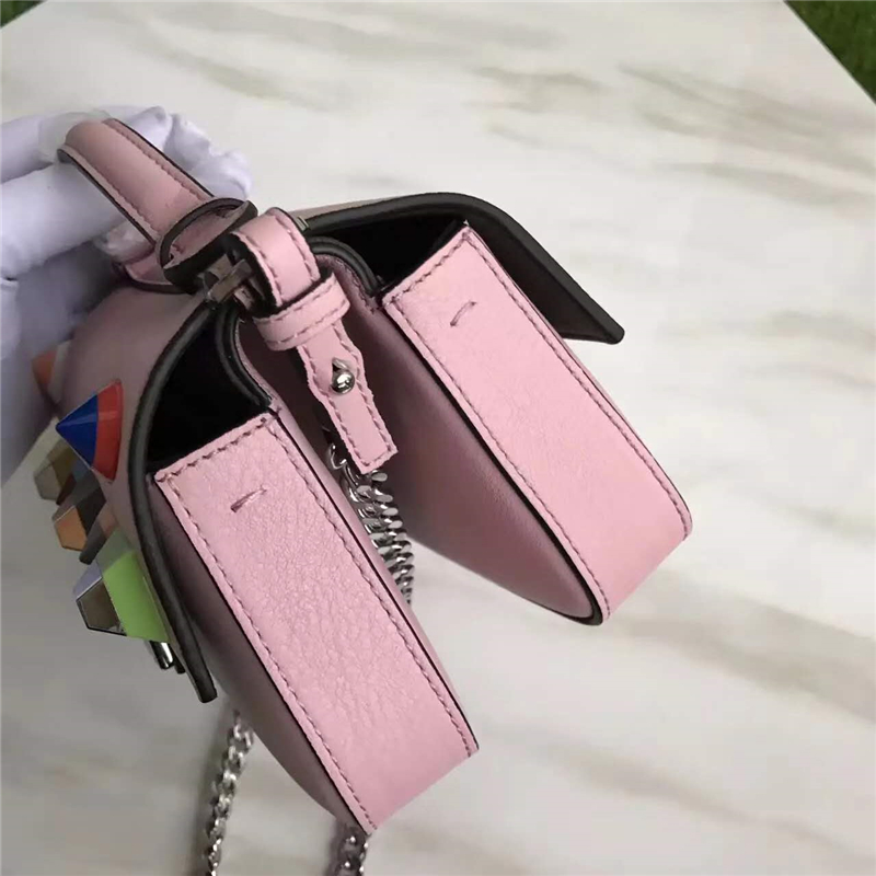 FENDI 1765 17新款小牛皮彩色鉚釘包 兩面開合 雙F扣鏈條包 粉色