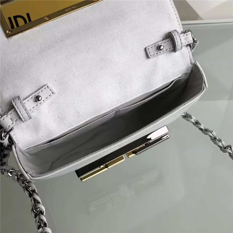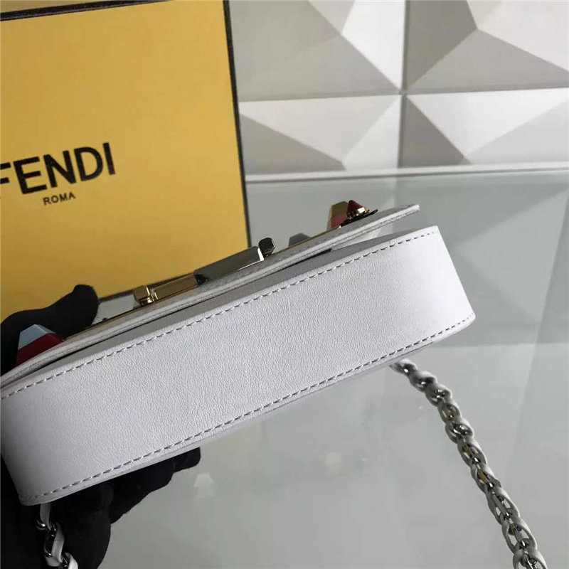 當前位置: 首頁>Fendi|芬迪>Fendi女包> FENDI 芬迪305 彩鉆花MINI 3BAGUETTE 小牛皮雙F扣鏈條包肩背包 白色