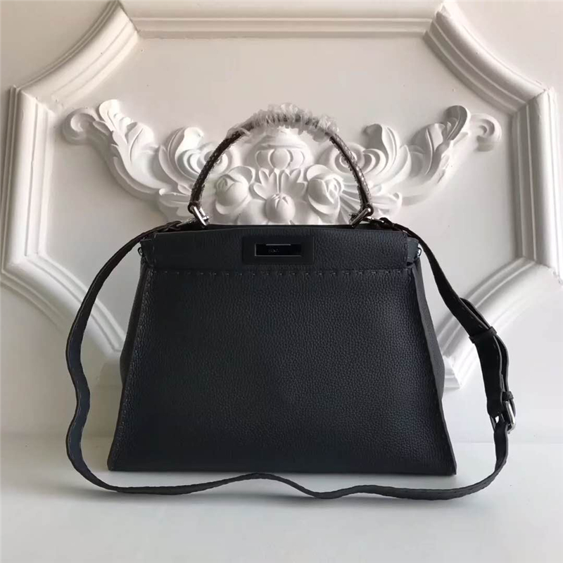 3106M FENDI芬迪 PEEKABOO 蟒蛇皮單提手 荔枝紋牛皮手提包 藏青色