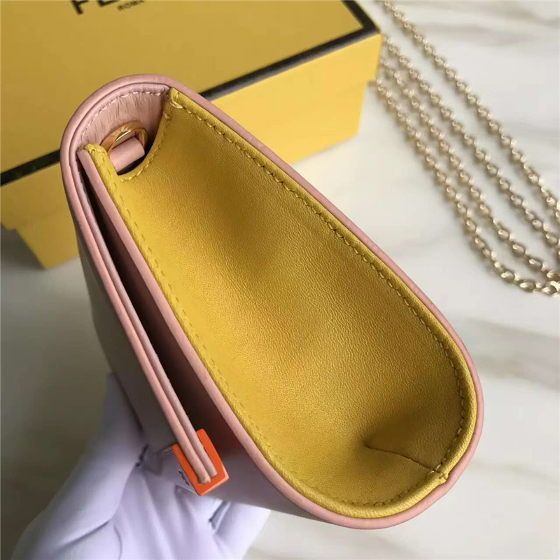2305 Fendi 芬迪 2305 小牛皮 撞色拼皮迷你單肩鏈條包 粉色