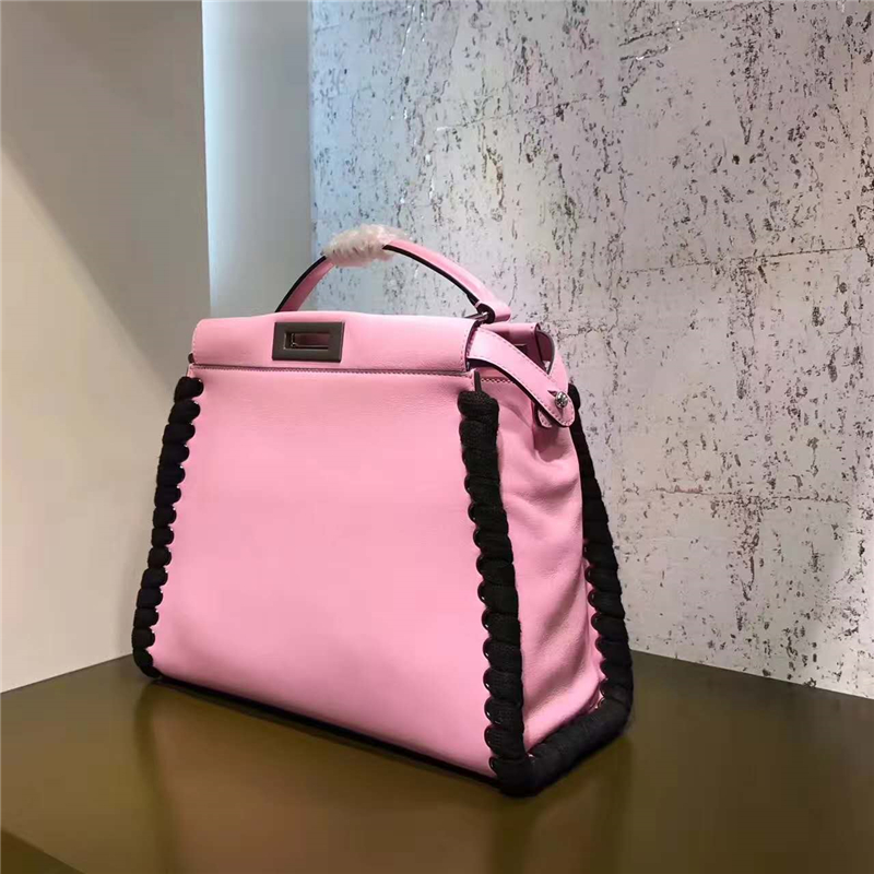 FENDI 芬迪7210 小牛皮革手提包 皮條穿孔 編繩肩帶 單提手