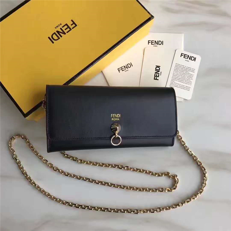 • Fendi 芬迪 0252 小牛皮 大號長款皮夾 金屬環 可拆卸鏈條肩帶