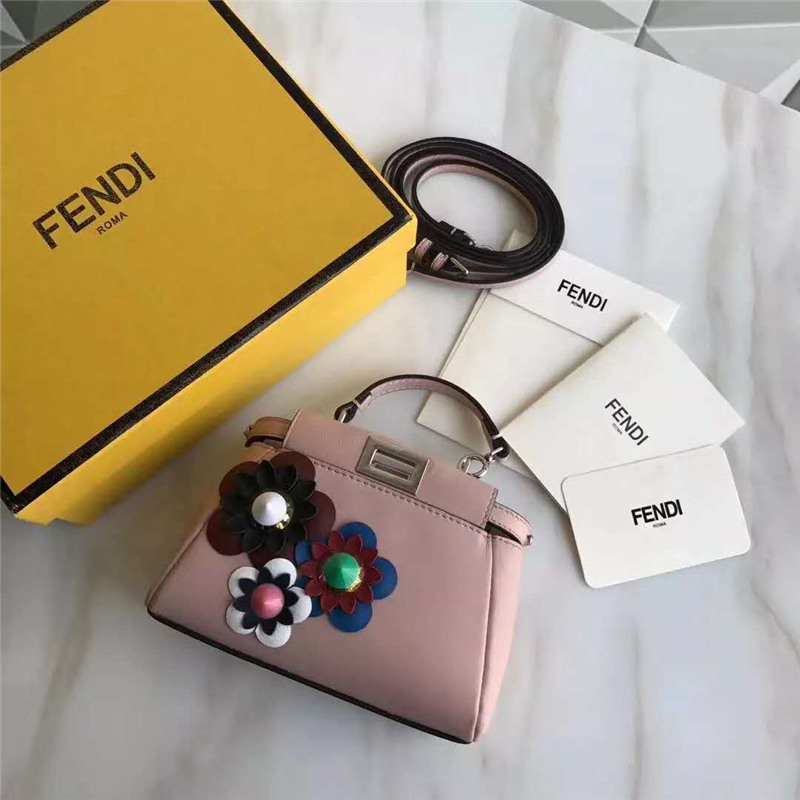 • FENDI 芬迪新款 時(shí)裝秀羊皮MICRO PEEKABOO 太陽花花朵小貓包 裸粉