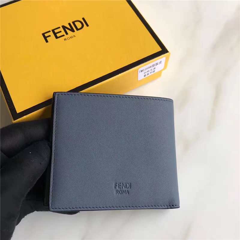 FENDI 芬迪 羅馬皮革SELLERIA長款 小怪獸牛皮短款二折錢包 灰黑色