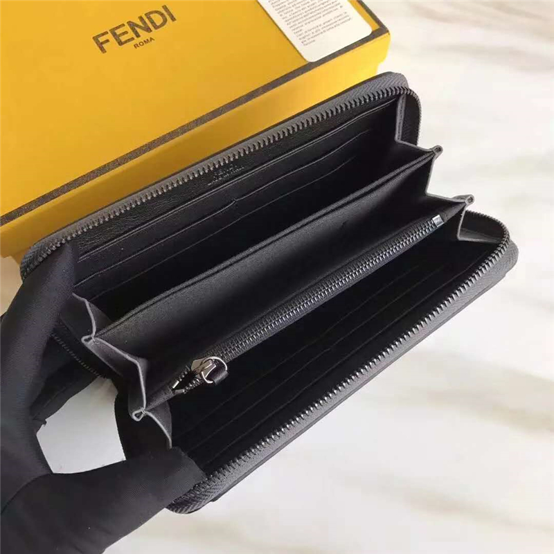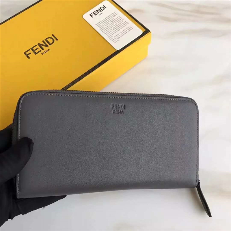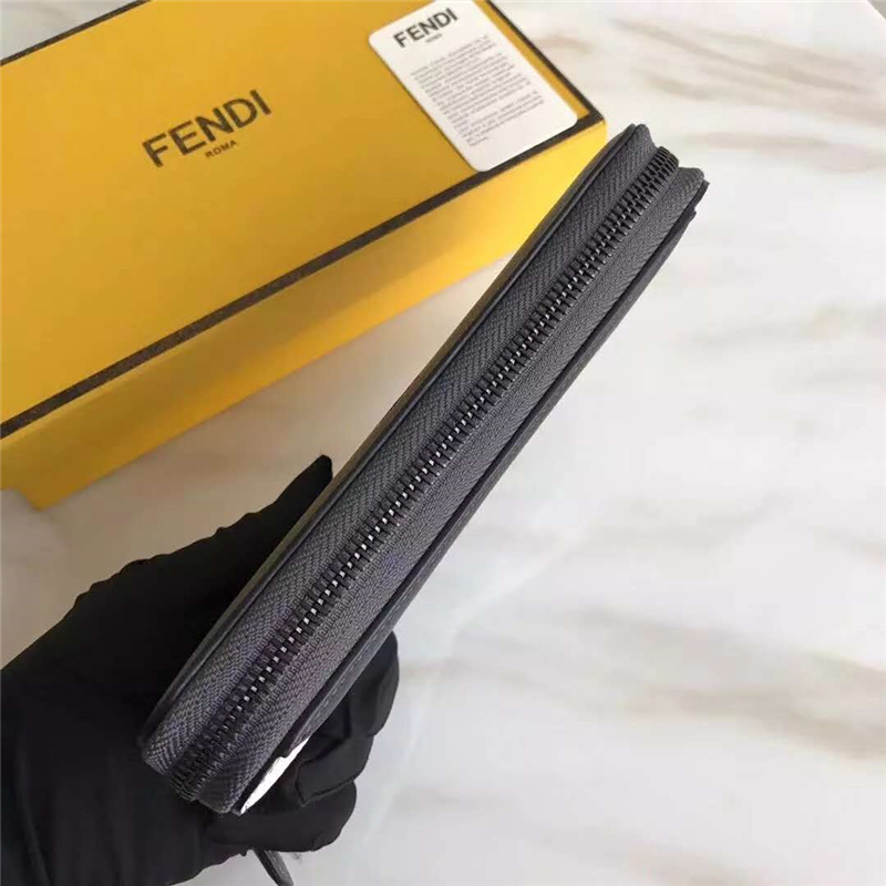 • FENDI 芬迪 2017新款 小怪獸眼睛 真皮休閑長款拉鏈錢包 灰色