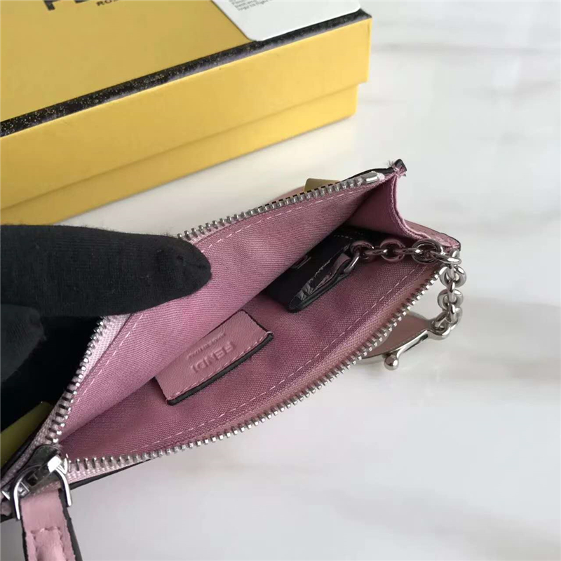 • FENDI 芬迪 1513 2017新款女士皮質鉚釘裝飾短款拉鏈零錢包鑰匙包 櫻花粉