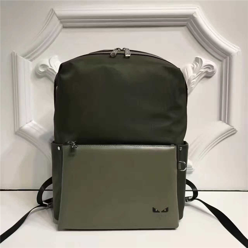Fendi 芬迪新款 尼龍拼皮 BAG BUGS眼睛圖案 雙肩背包 軍綠色