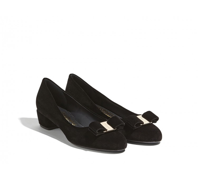 679021 Ferragamo菲拉格慕 VARA 絨布 羅緞蝴蝶結中跟鞋 黑色